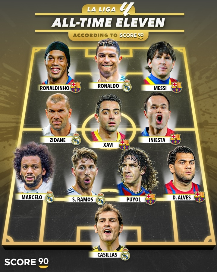后衛(wèi):馬塞洛(皇馬)、拉莫斯(皇馬)、普約爾(巴薩)、阿爾維斯(巴薩)