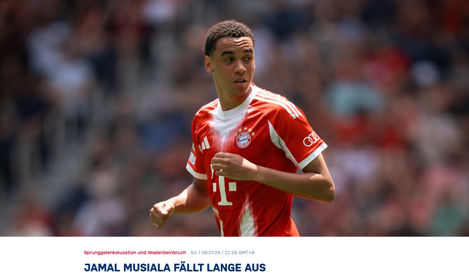 賈馬爾-穆西亞拉在美國舉行的世俱杯四分之一決賽拜仁慕尼黑vs巴黎圣日耳曼的比賽中遭遇重傷,不得不在中場休息時被替換下場。拜仁隊醫(yī)檢查后發(fā)現(xiàn),穆西亞拉遭受踝關(guān)節(jié)脫臼外加腓骨骨折。這位22歲的球員于周日早上從奧蘭多飛往慕尼黑,并將于近期接受手術(shù)。