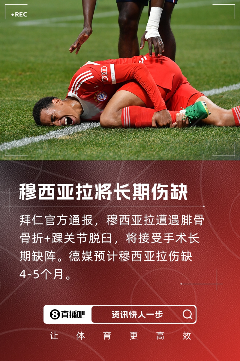 07月06日訊 拜仁官方宣布,穆西亞拉腓骨骨折+踝關(guān)節(jié)脫臼,將接受手術(shù)長期缺陣。德國媒體此前消息稱,穆西亞拉預(yù)計將傷缺4-5個月。