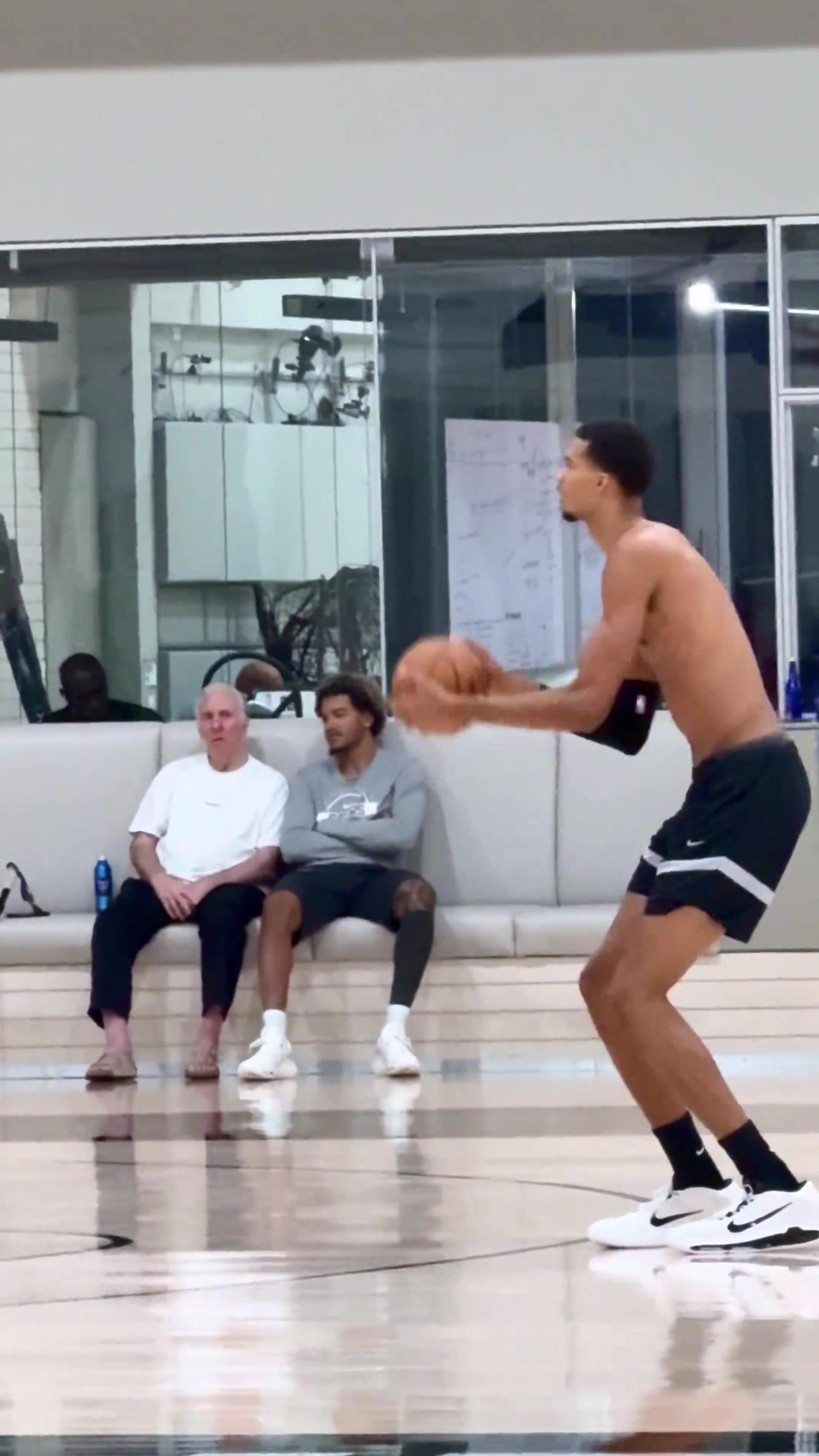 名師高徒!波波維奇在馬刺訓(xùn)練場(chǎng)邊觀看文班投籃 索漢陪伴身邊