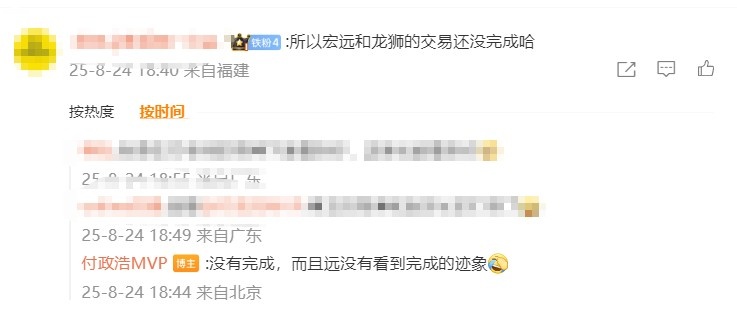 在這條微博動(dòng)態(tài)的評論中,付政浩還回復(fù)網(wǎng)友:“(廣東和廣州的交易)沒有完成,而且遠(yuǎn)沒有看到完成的跡象?!?/p>
