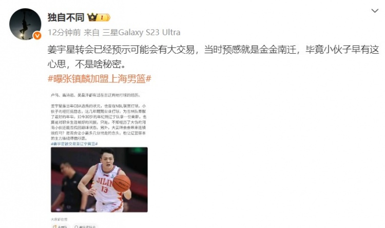 消息出來后,青島男籃記者杜金城在個人微博上寫道:“姜宇星轉(zhuǎn)會已經(jīng)預(yù)示可能會有大交易,當(dāng)時預(yù)感就是金金南遷,畢竟小伙子早有這心思,不是啥秘密。”
