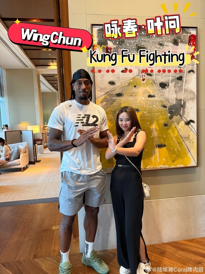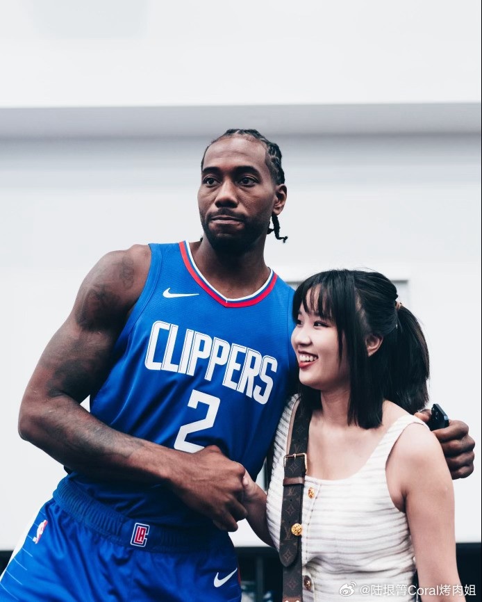 前記者、萊昂納德中方經(jīng)紀(jì)人“烤肉姐”陸垠箐曬出與小卡的合照,并寫道:“中國功夫卡 ??”