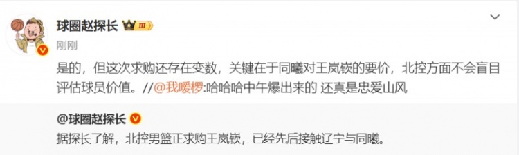 8月28日訊 據(jù)媒體人@球圈趙探長(zhǎng) 報(bào)道,北控男籃正求購(gòu)?fù)鯈箥?,已?jīng)先后接觸遼寧與同曦。