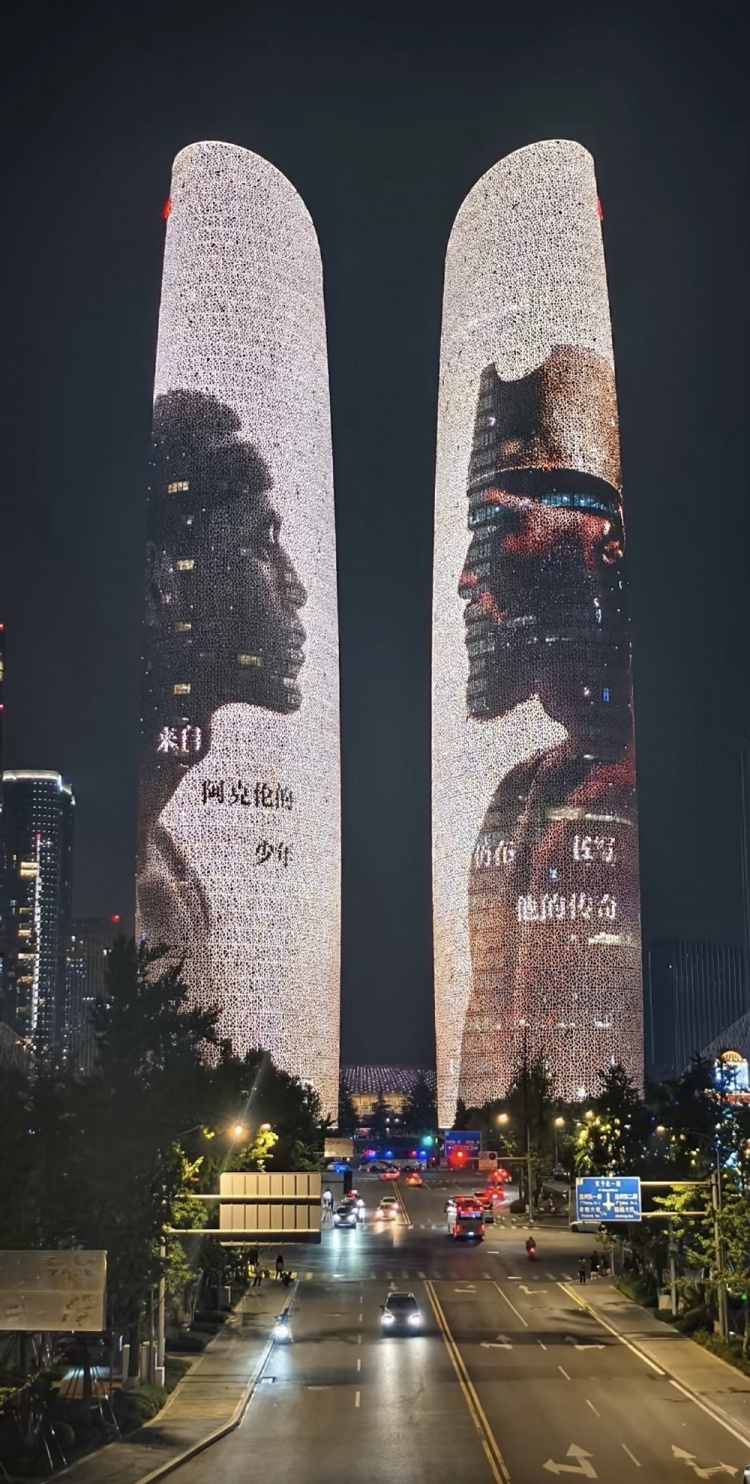 據(jù)多位網(wǎng)友及“詹姆斯吧官方微博”爆料,成都地標性建筑金融城“雙子塔”今晚為迎接詹姆斯中國行點亮燈光秀,播放了詹姆斯生涯中的精彩瞬間,并展示了詹姆斯青少年時期與如今年過四旬的形象相視而望的場景。