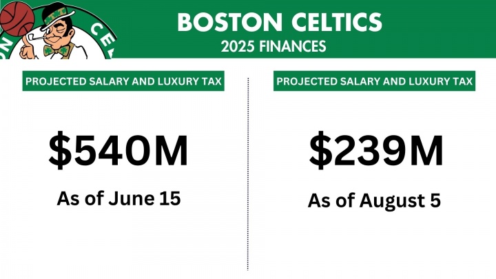 在美國時間6月15日,凱爾特人的受保障薪資加上奢侈稅高達(dá)5.4億美元。