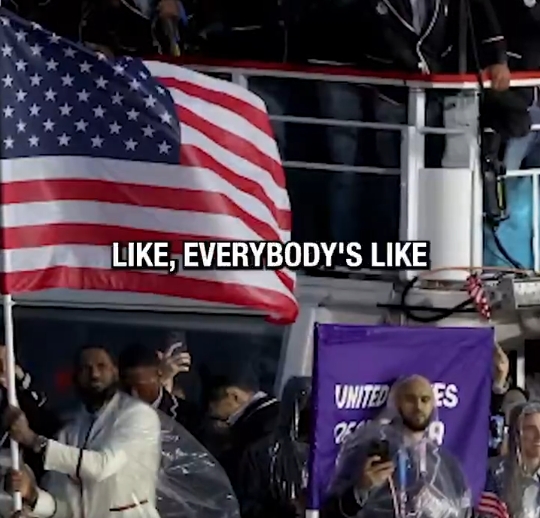 被問到自己為什么要在開幕式擋住美國隊的標志時,懷特表示:“我看大家都在往船的前面走,我就也往前走。結(jié)果他們讓我往回走,因為旗手詹姆斯和高芙要在最前面。我往回走,發(fā)現(xiàn)我前面有個超大的標志,還有詹姆斯、高芙在我面前揮舞著大旗,這樣我什么景色都看不到了啊。