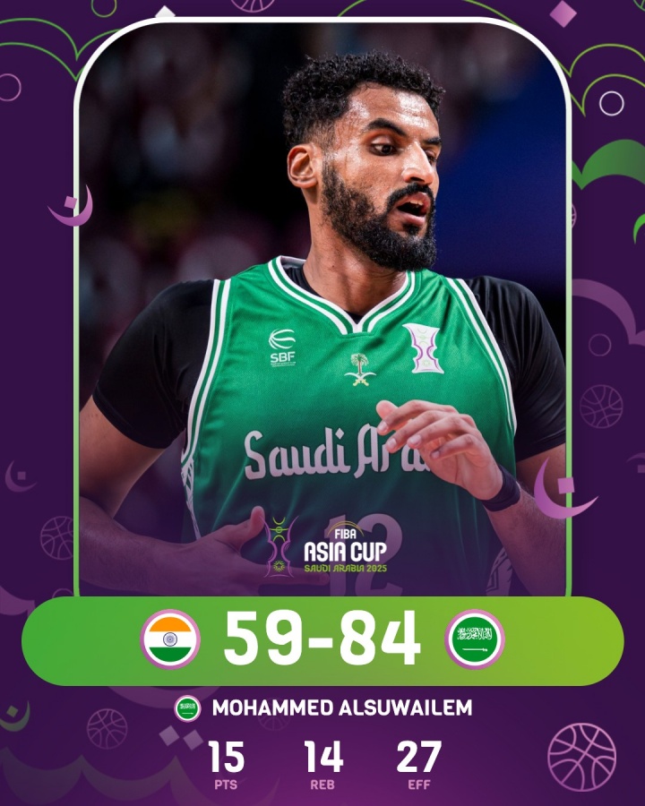 本場(chǎng)比賽,沙特男籃統(tǒng)治了內(nèi)線,全隊(duì)45-25的籃板球壓制了印度男籃。2米08中鋒阿爾蘇韋萊姆9投7中,砍下15分14籃板,歸化后衛(wèi)拉赫曼18投6中,三分10中2,得到14分6籃板5助攻。印度男籃布拉10投7中,三分1中1,罰球8中5,空砍20分獨(dú)木難支。