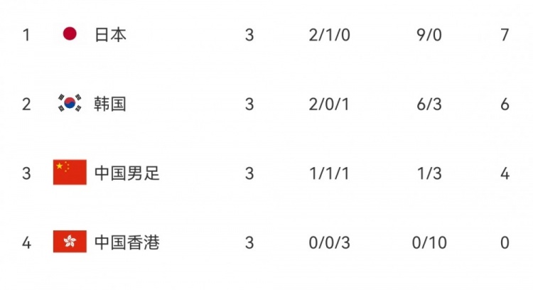 07月12日訊 東亞杯第2輪,中國男足0-2負(fù)于日本,2戰(zhàn)全負(fù)積0分,暫列小組第三。