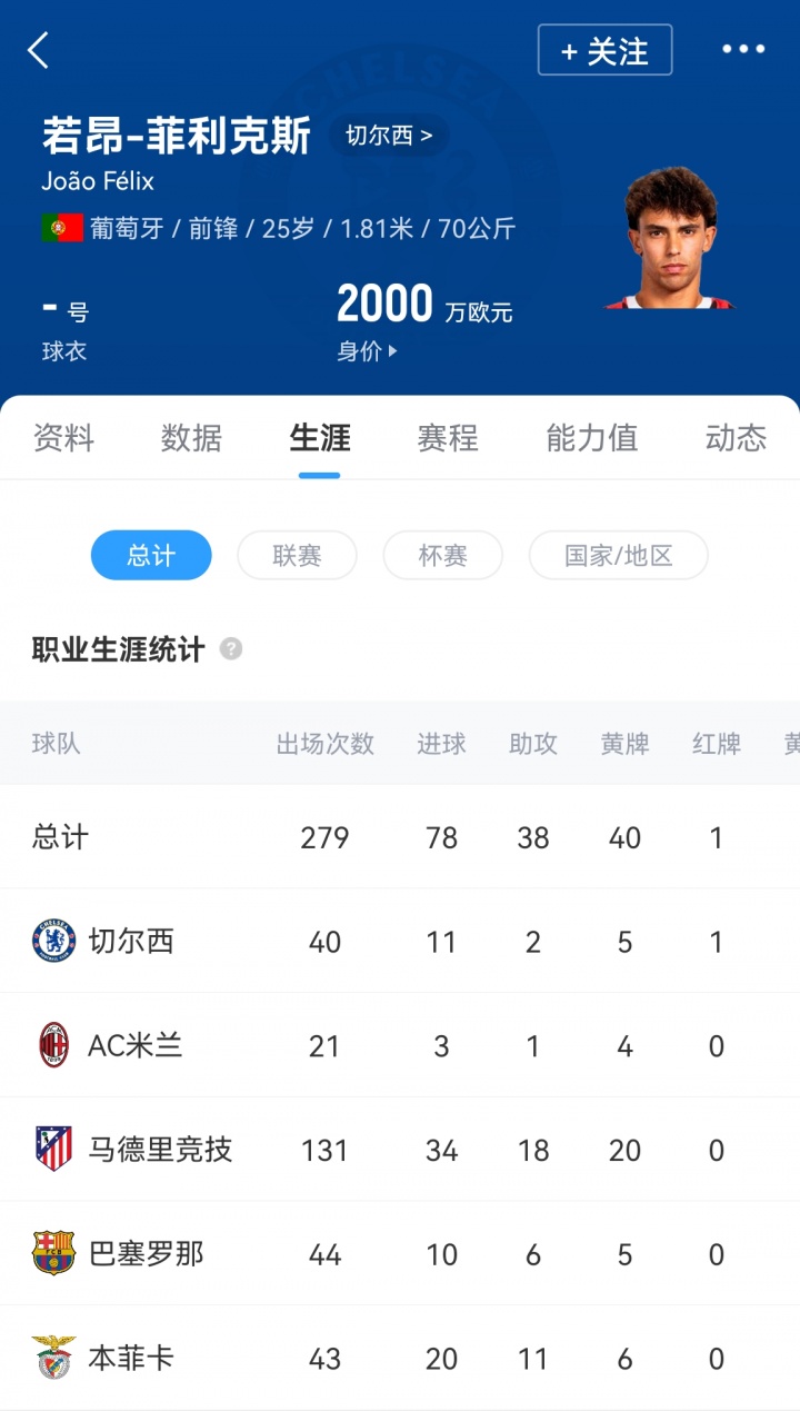 菲利克斯去年夏窗5200萬歐元從馬競轉(zhuǎn)會切爾西,冬窗被外租至AC米蘭。