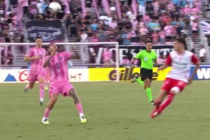 下半場(chǎng)補(bǔ)時(shí)6分鐘,第95分鐘,邁阿密左路角球開(kāi)到禁區(qū)第一點(diǎn)被頂出,弧頂阿爾巴遠(yuǎn)射被門將神勇?lián)涑?。?/p>