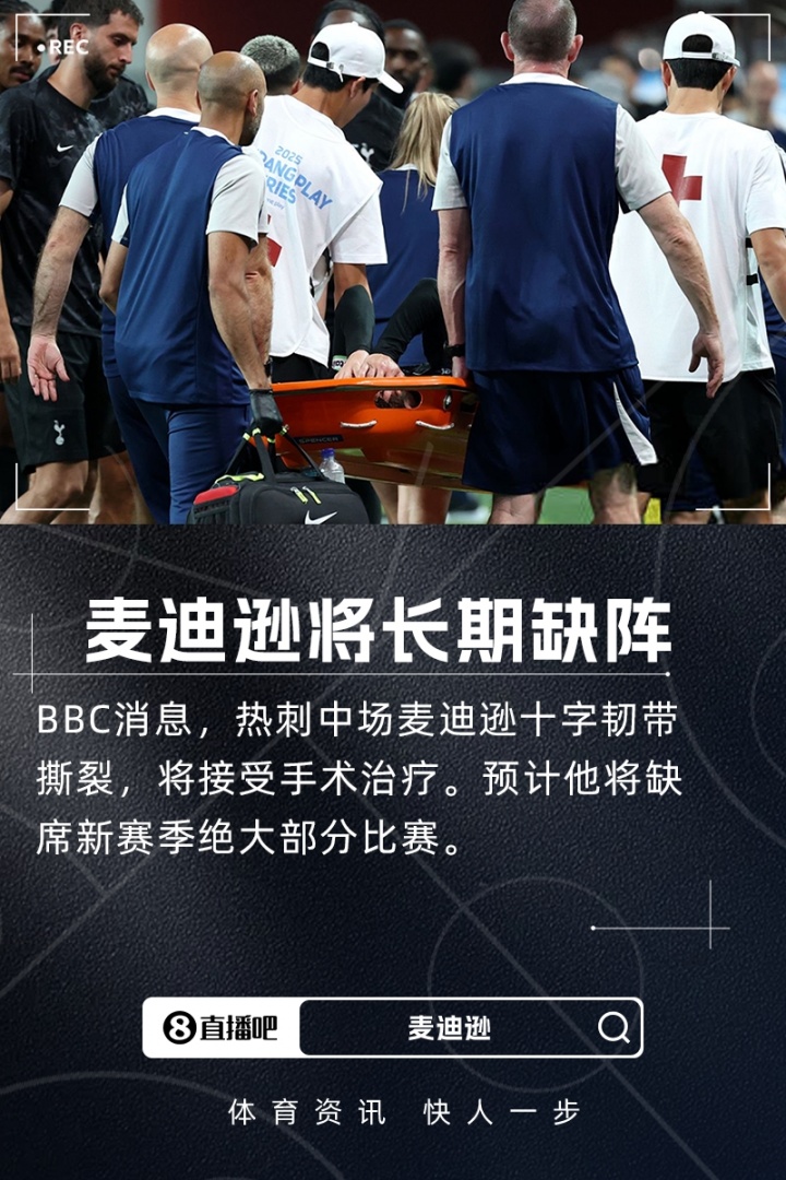 08月07日訊 據(jù)BBC報(bào)道,熱刺中場麥迪遜十字韌帶撕裂,將缺席下賽季大部分比賽。