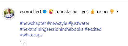 08月10日訊 穆勒確定加盟溫哥華白浪后,即將開(kāi)啟全新的生活。近日,穆勒在社媒上發(fā)布了一張留著小胡子的照片。
