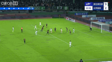 08月10日訊 中超第20輪,浙江vs北京國安,比賽第65分鐘,法比奧門前兩連擊破門,國安3-3扳平浙江。