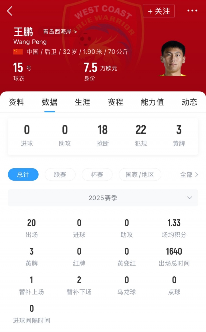 王鵬現(xiàn)年32歲,司職后衛(wèi),職業(yè)生涯曾效力于長(zhǎng)春亞泰、滄州雄獅、深圳。
