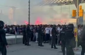 賽前火藥味!巴薩、巴黎球迷場(chǎng)外大規(guī)模沖突,警察出動(dòng)維持秩序